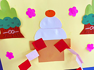 ・三方に飾る赤白の紙を折るのが非常に難しかった。切り離してはいけない部分まで切り落としてしまう生徒さんも見られた。中央に鏡餅、左右に門松を配置し、立派に作れたので出来上がって嬉しそうだった。