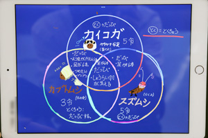 これまでカイコガ、カブトムシの幼虫の観察も行ってきたので、3種類の虫の共通点をiPadを使ってまとめていきます。