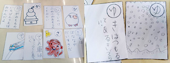 ・自分で書きたい絵を決め、文章を考えてオリジナルのかるたを作ることができました。実際に作った札を使って遊ぶことができました。