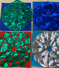 ・6重に折りたたまれた折り紙をハサミの根元で切り込みを入れるところを苦労したが、広げるとシンメトリーな図形に喜んでいた。